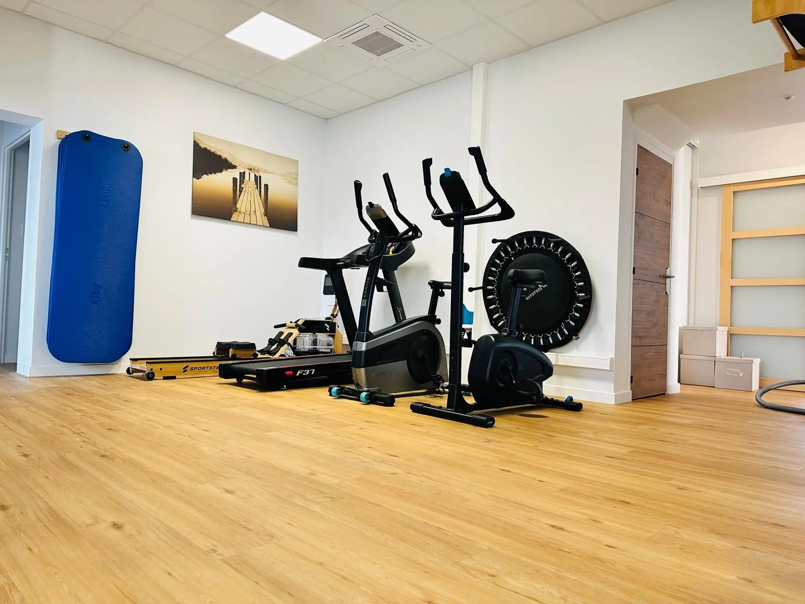 Notre cabinet moderne et chaleureux est équipé d’un large choix de matériel pour vous offrir un suivi de qualité et des soins adaptés à vos objectifs : vélos, rameur, cryothérapie, Huber LPG®, bottes de pressothérapie, CELLU M6 ALLIANCE®, presse inclinée, squat core smith, tour de musculation, BlazePod® pour le travail de la réactivité, et un tapis de course pour des séances de rééducation cardio-vasculaire efficaces.Le cabinet en image
